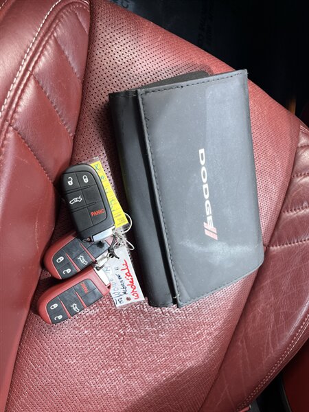2018 Dodge Challenger SRT Hellcat — a 707-hp, HEMI 6.2L supercharged V8 monster that doesn’t whisper, it dominates. Factory performance hardware includes SRT-tuned suspension, high-performance Brembo braking hardware, limited-slip differential, SRT Performance Pages with track-ready tech (Launch Control, Line Lock and drive-mode selection), aggressive functional hood intake and quad exhausts, and a full SRT performance cockpit with Uconnect infotainment and keyless entry. This one wears Pitch Black Clear Coat outside and Black/Demonic Red leather inside, with Black Brake Calipers, Dual Carbon Stripes, Power Sunroof and striking Black/Demonic Red seats added. Under 40,000 miles (averaging less than 5,000 miles/year) and in excellent overall condition — ready to unleash.